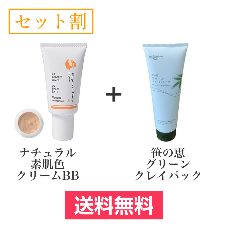 【セット割】ナチュラル素肌色クリームBB(30g)+笹の恵 グリーンクレイパック(250g)